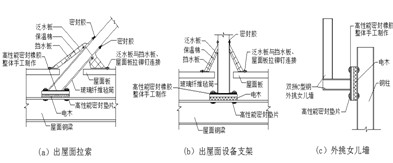 屋面洞口主要是指通风器(转流通风气器支座,自然通风器支座和条形通风器支座)、出屋面拉索节点和设备支架等(如图3)。