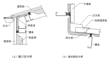 图4  檐口和高低跨冷桥[钢结构房屋防冷(热)桥问题]
