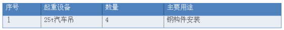 按现场平面布置图,共5个钢结构厂房钢结构工程需要安装,结合其起重性能和工况分析,现场配置NK250型25t汽车吊4台。
