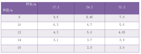 NK250型25t汽车吊额定总起重量表如下(单位:T):